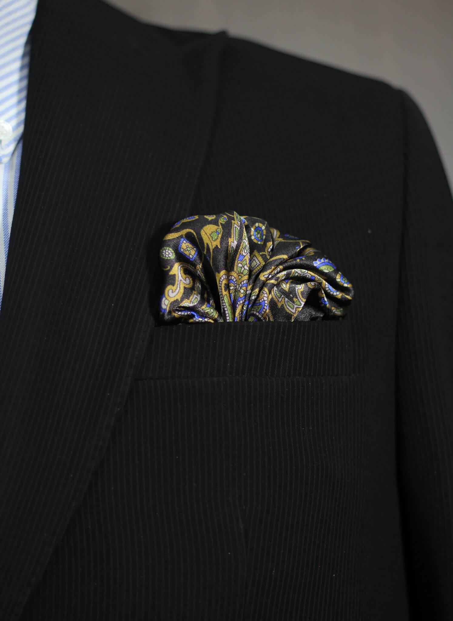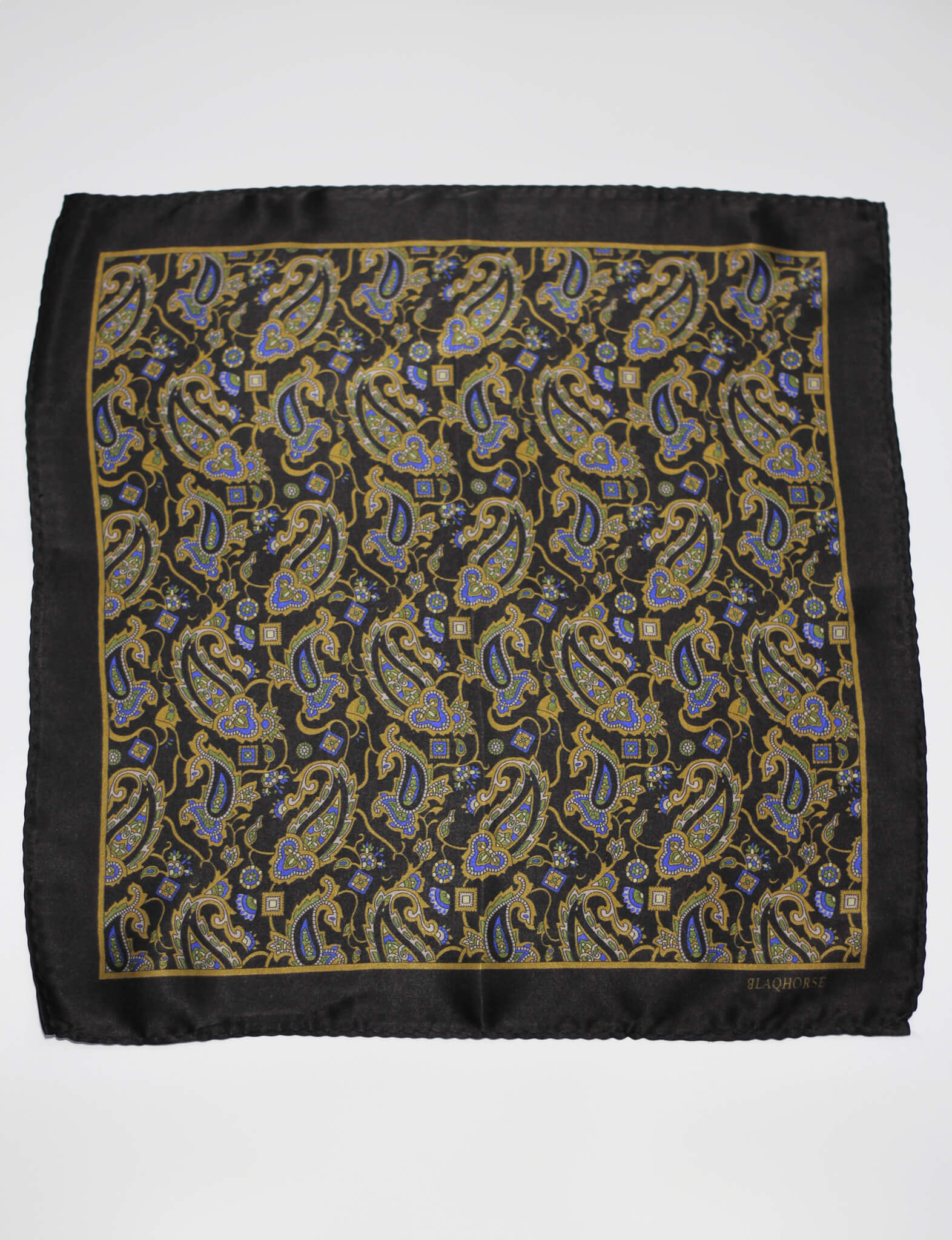 Enhance your style with our Black Paisley Pocket Square, crafted from the finest Italian silk. This striking accessory features a bold paisley design that beautifully combines warm rust and deep black tones, making it a perfect statement piece for any occasion. Ideal for elevating a blazer or adding flair to your outfit, this pocket square effortlessly blends sophistication and charm. Treat yourself or give it as a thoughtful gift—it's sure to impress!