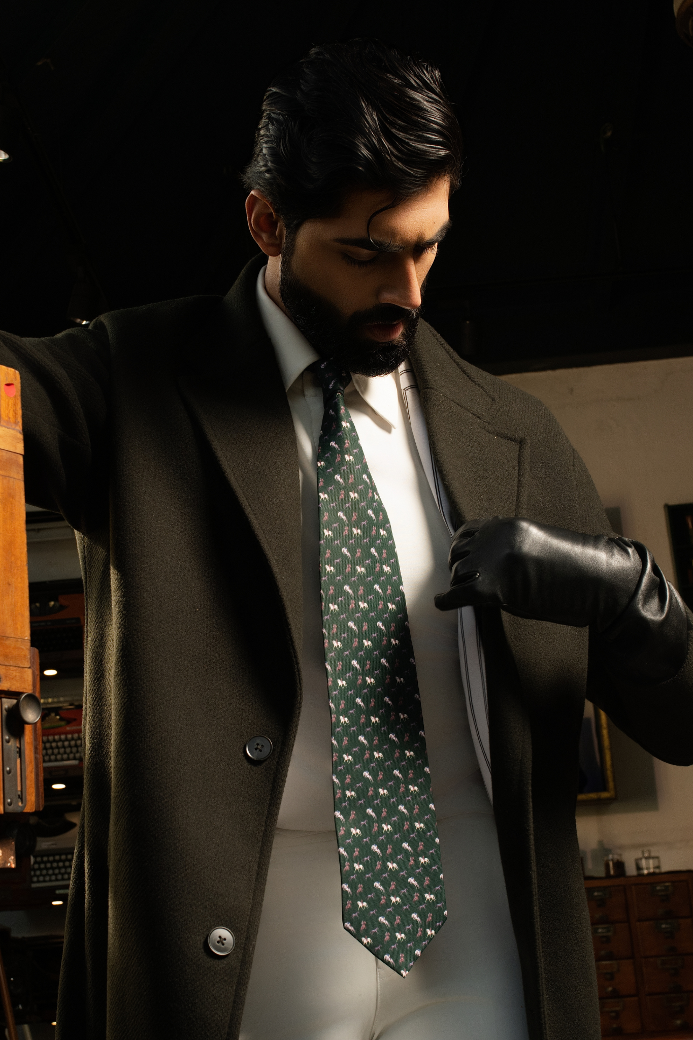 Classic equestrian motif on a rich dark green base for timeless sophistication