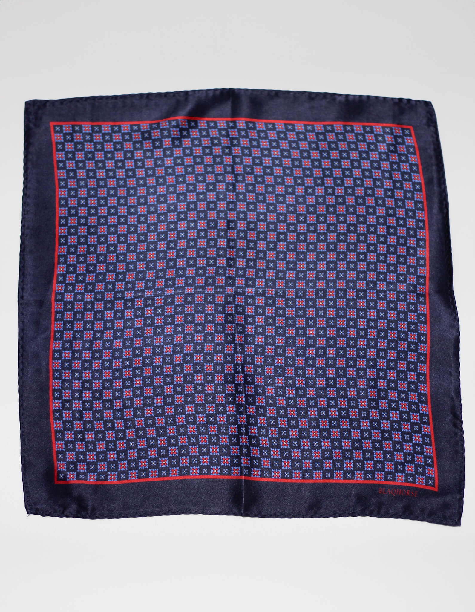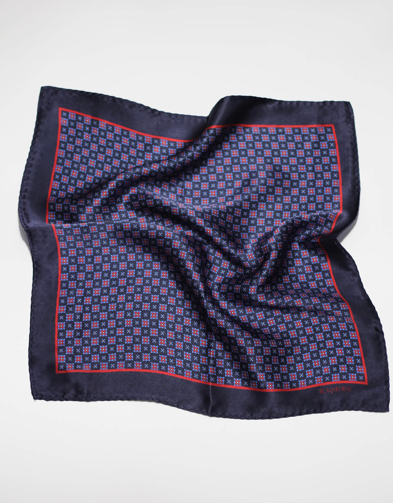 Enhance your style with our Navy Check Pocket Square , crafted from the finest Italian silk. This striking accessory features a bold paisley design that beautifully combines warm rust and deep black tones, making it a perfect statement piece for any occasion. Ideal for elevating a blazer or adding flair to your outfit, this pocket square effortlessly blends sophistication and charm. Treat yourself or give it as a thoughtful gift—it's sure to impress!