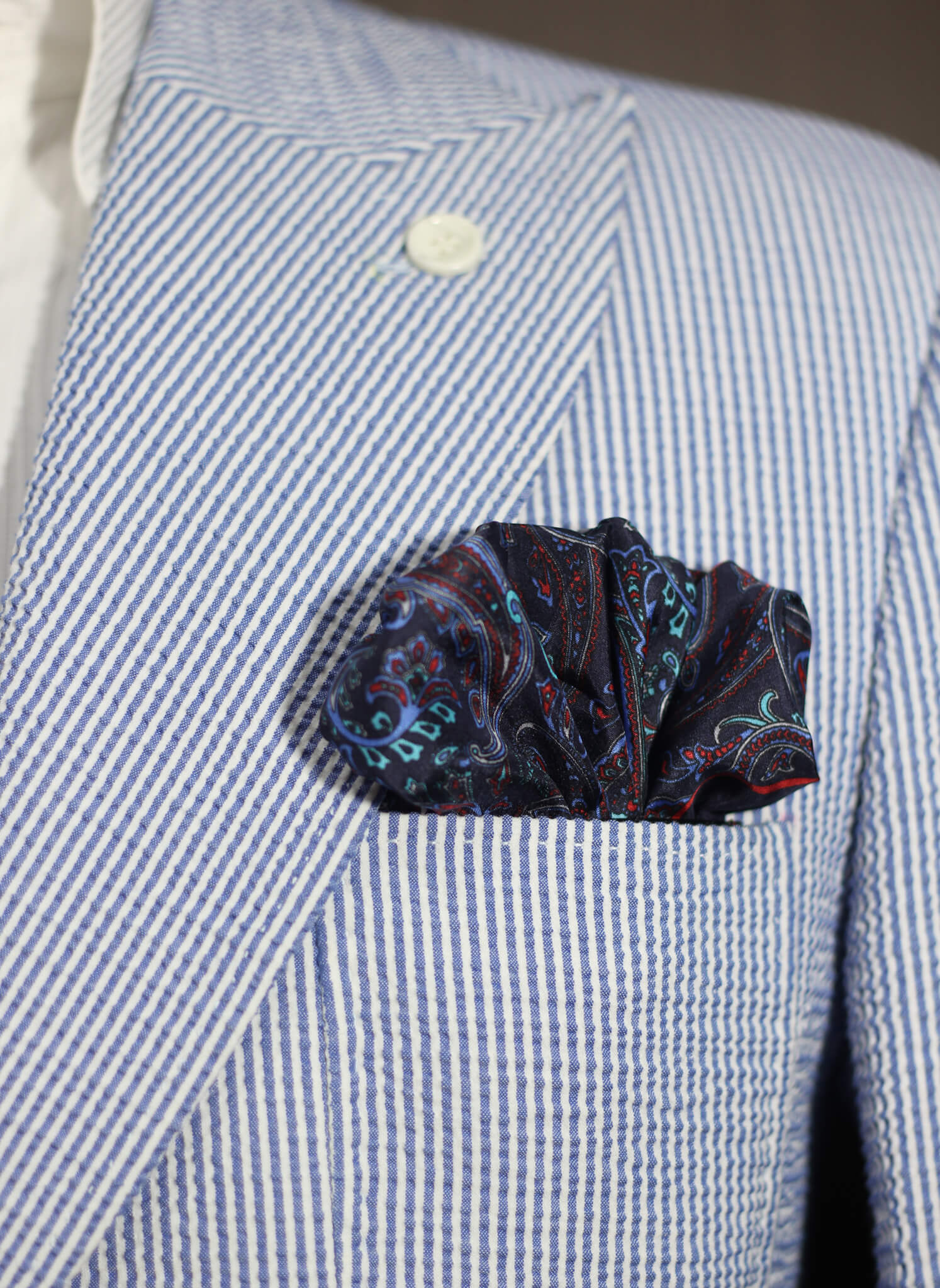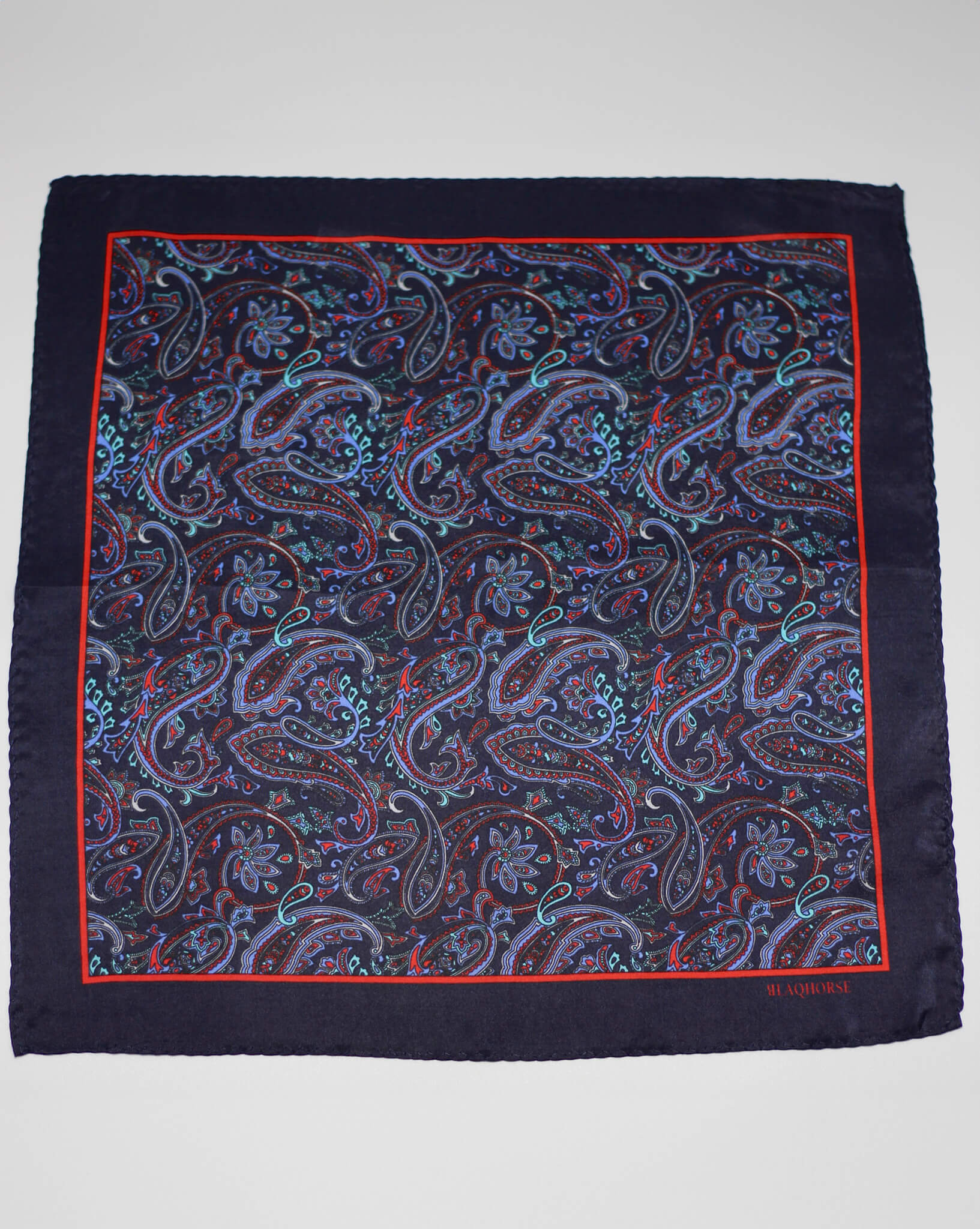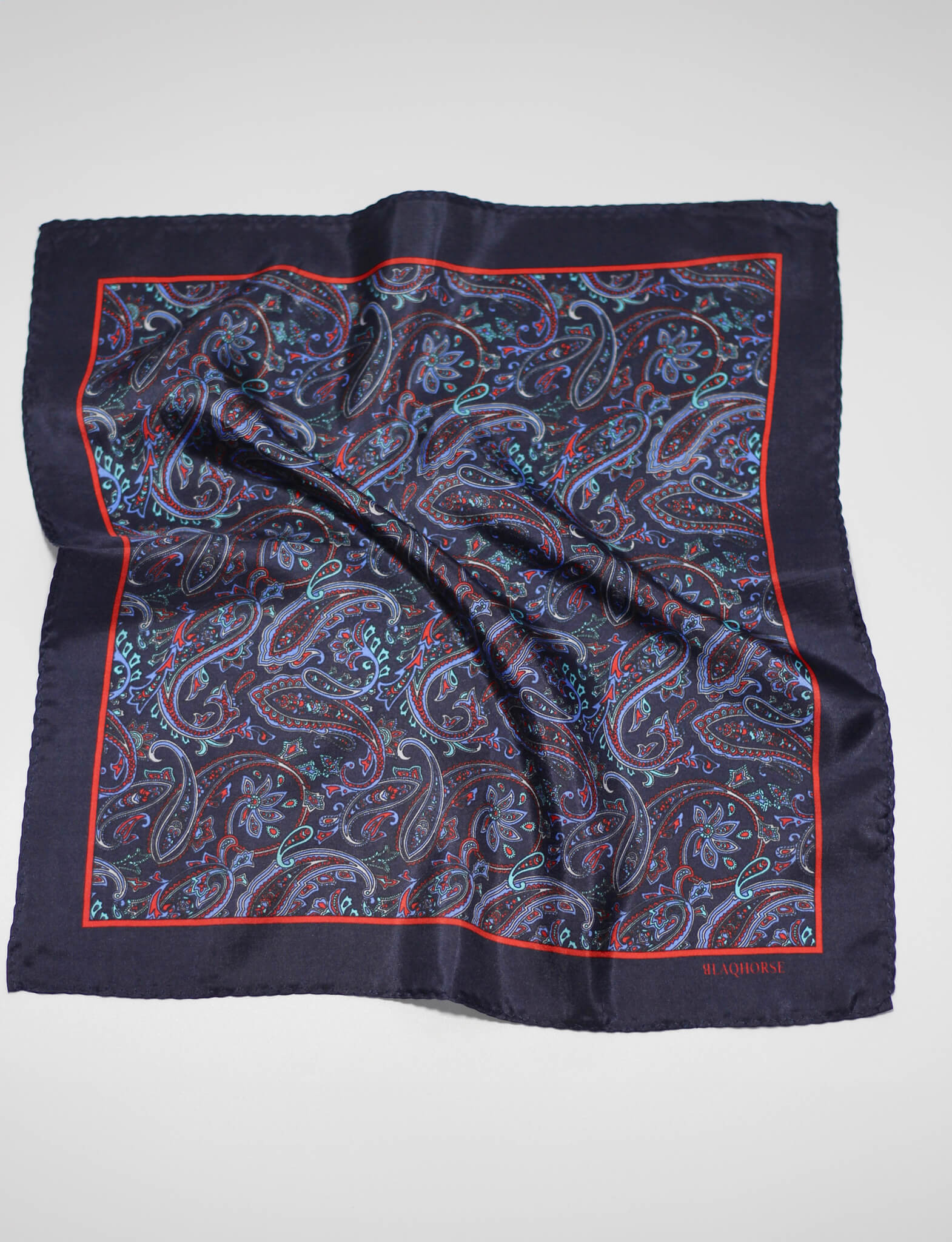 Enhance your style with our Navy Paisley Pocket Square, crafted from the finest Italian silk. This striking accessory features a bold paisley design that beautifully combines warm rust and deep black tones, making it a perfect statement piece for any occasion. Ideal for elevating a blazer or adding flair to your outfit, this pocket square effortlessly blends sophistication and charm. Treat yourself or give it as a thoughtful gift—it's sure to impress!