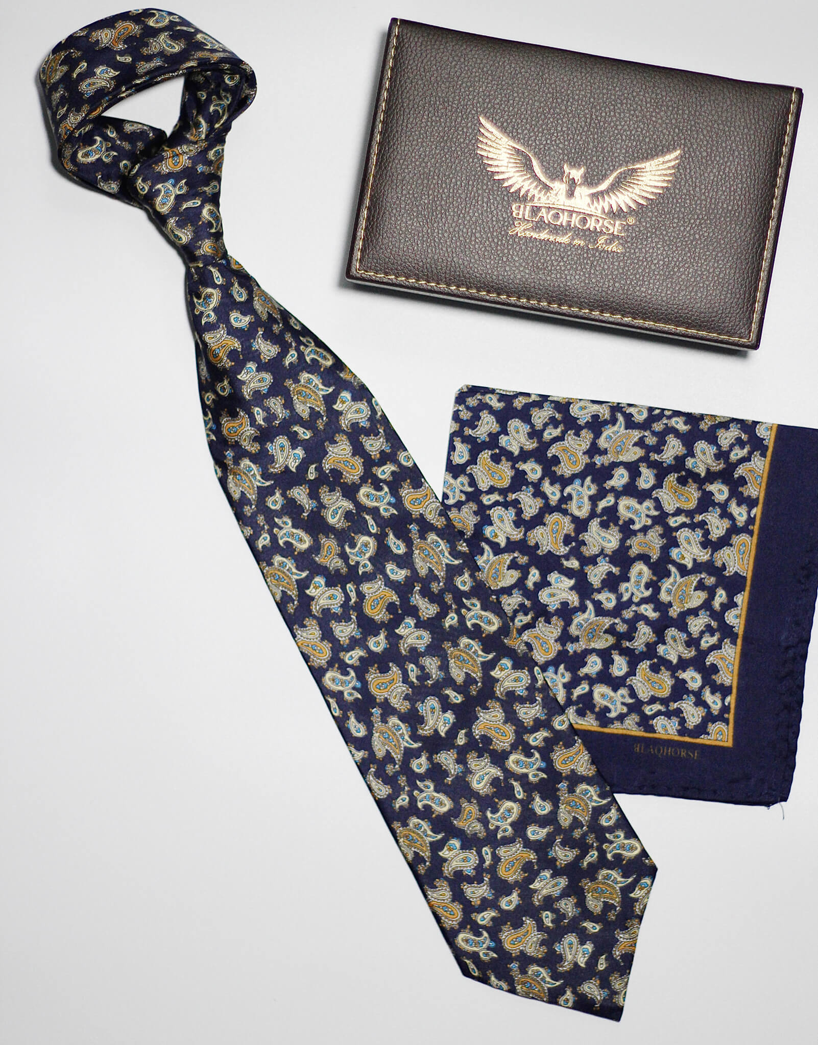 Elevate your formal attire with our Navy paisley satin silk tie and matching pocket square. Crafted in India from premium satin silk, this tie features traditional hand-sewing techniques for exceptional quality.