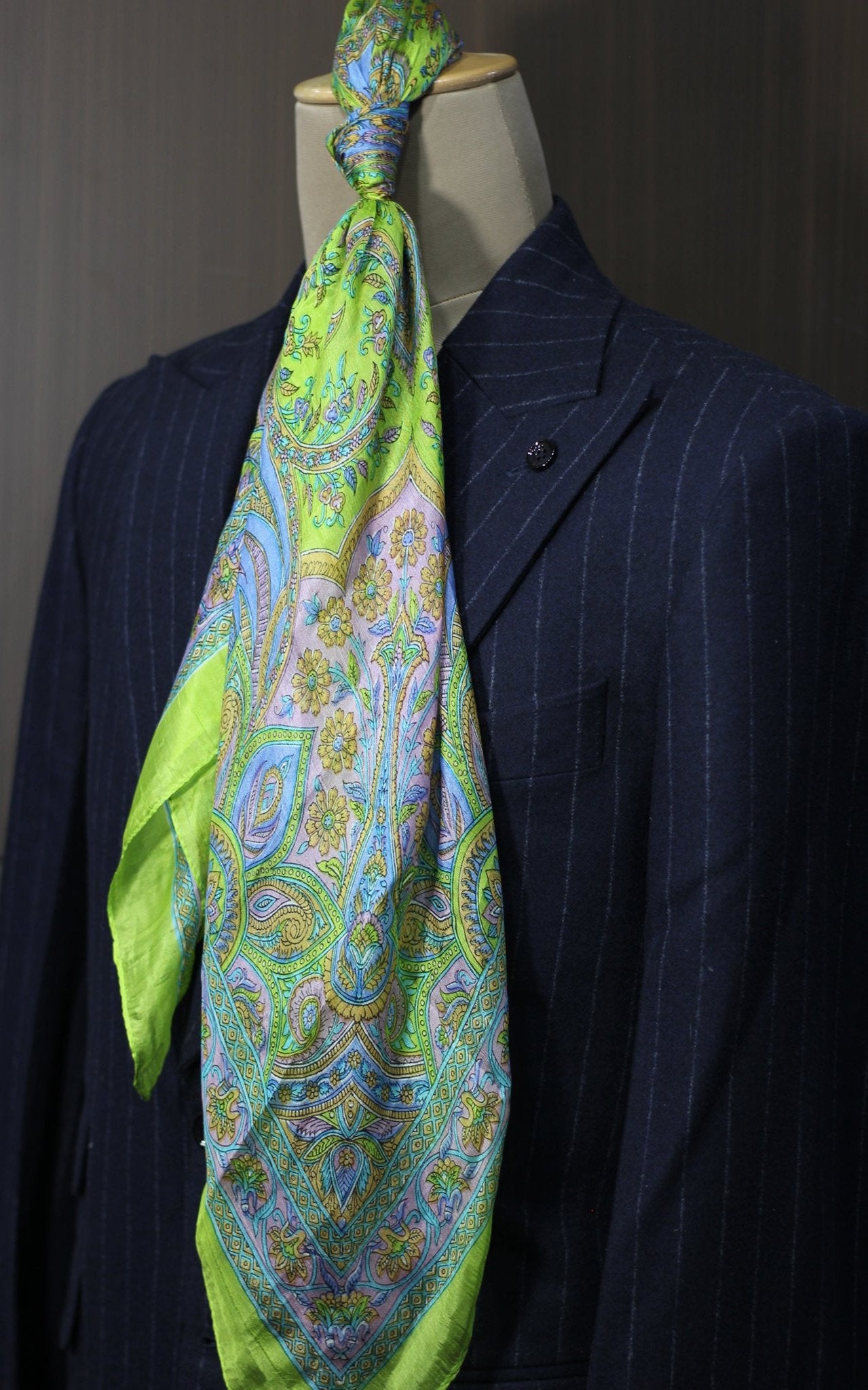 Measuring 100x100 cm, this scarf is luxuriously soft on the neck, offering exceptional comfort. Lightweight and breathable, it keeps you cool during the warmer months while adding a vibrant pop of color to your look. The striking neon green, sky blue and pink hue makes this scarf a unique and versatile accessory, perfect for pairing with Jodhpuri suits, Bandhgalas, kurta pajamas, blazers, or any formal ensemble that calls for a bold accent.