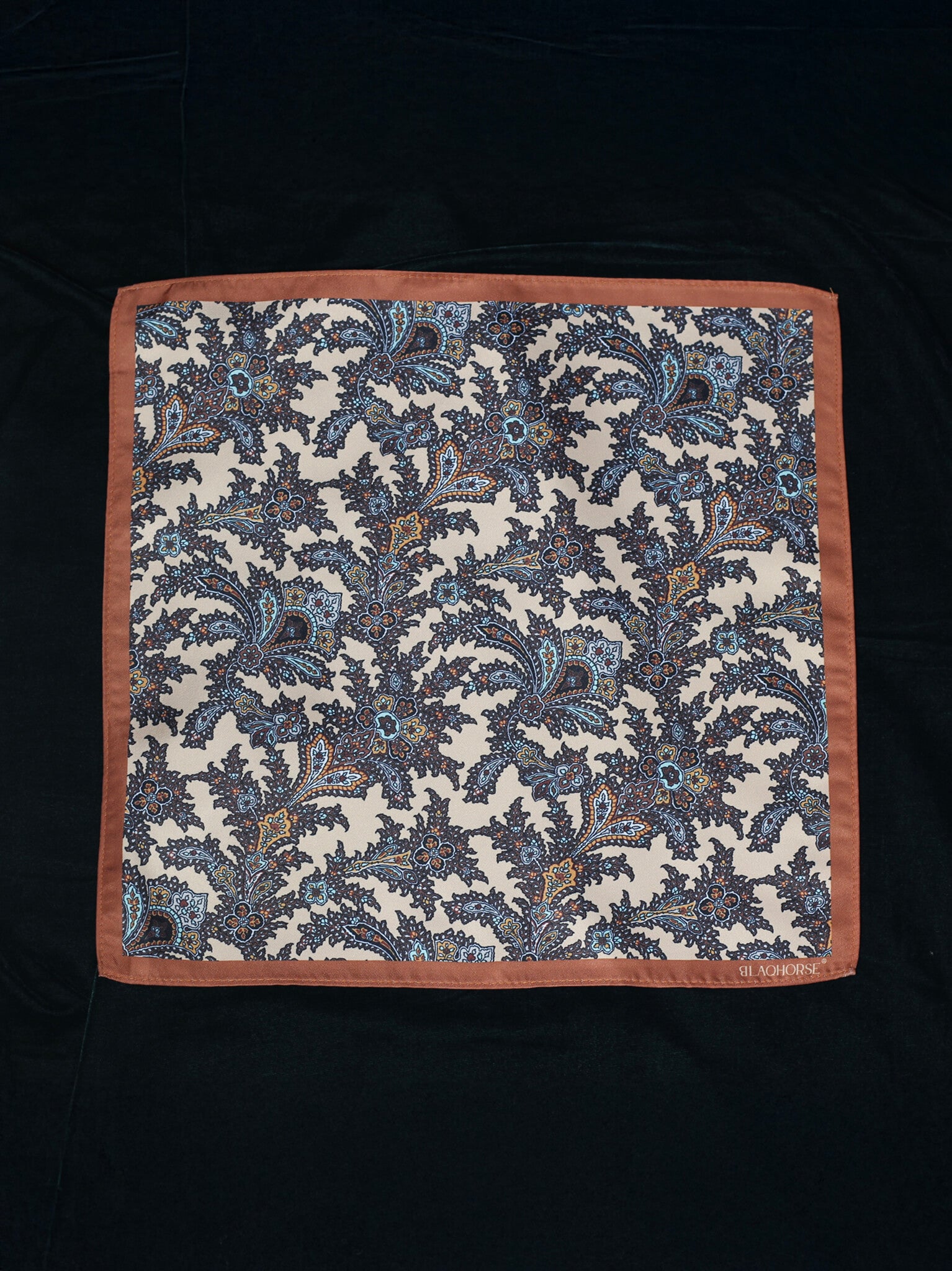 Elevate your look with our Peach and Blue Floral Long Scarf, made from luxurious satin twill. Featuring a lovely floral design in soft peach and vibrant blue, this scarf comes with same pocket square. Perfect for adding a chic touch to any outfit, it's an ideal accessory for both casual and special occasions. Transform your style effortlessly with this beautiful set!