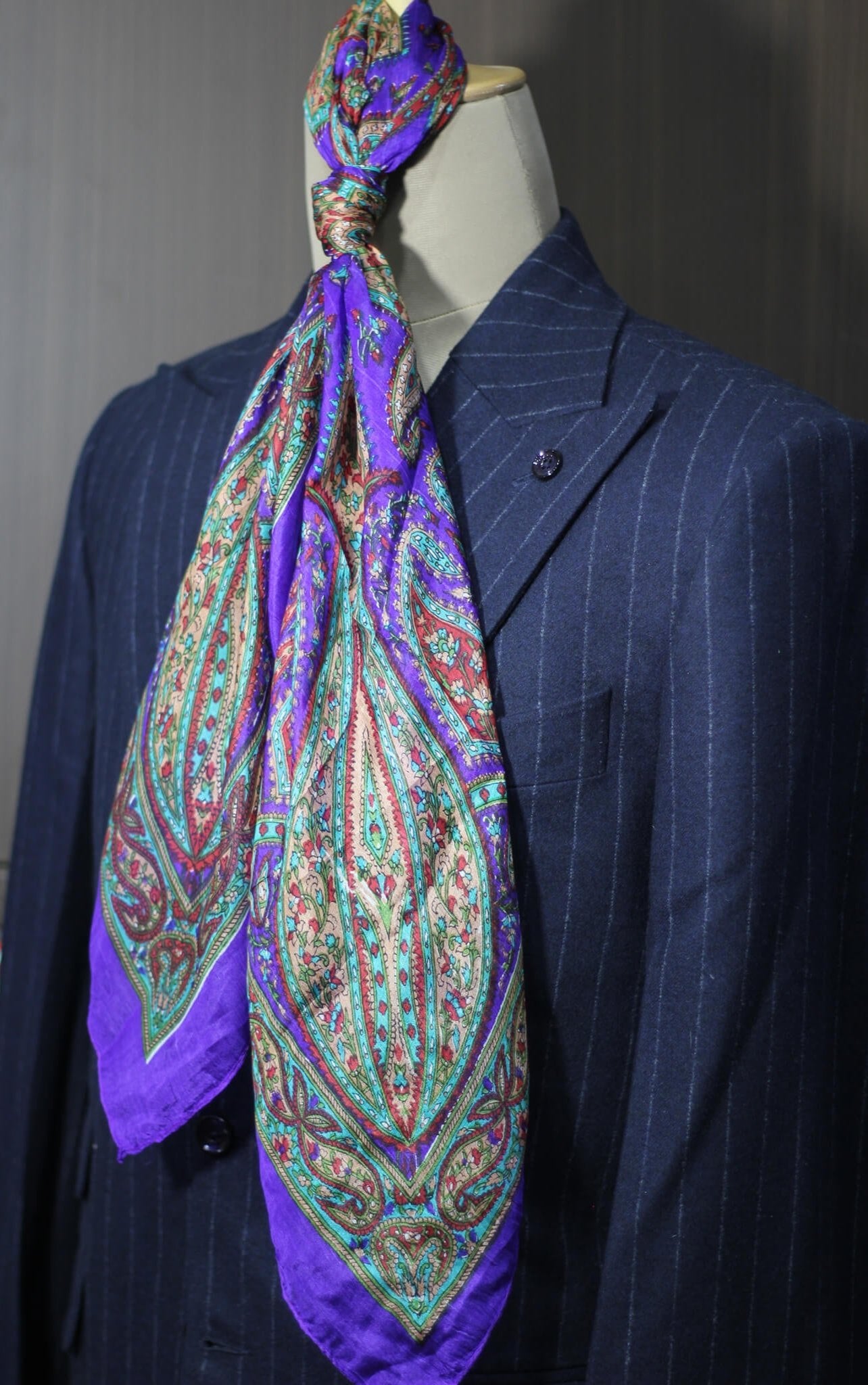 Measuring 100x100 cm, this scarf is luxuriously soft on the neck, offering exceptional comfort. Lightweight and breathable, it keeps you cool during the warmer months while adding a touch of sophistication. The vibrant purple and sea green hues make it a versatile accessory, perfect for pairing with Jodhpuri suits, Bandhgalas, kurta pajamas, blazers, or any formal ensemble.