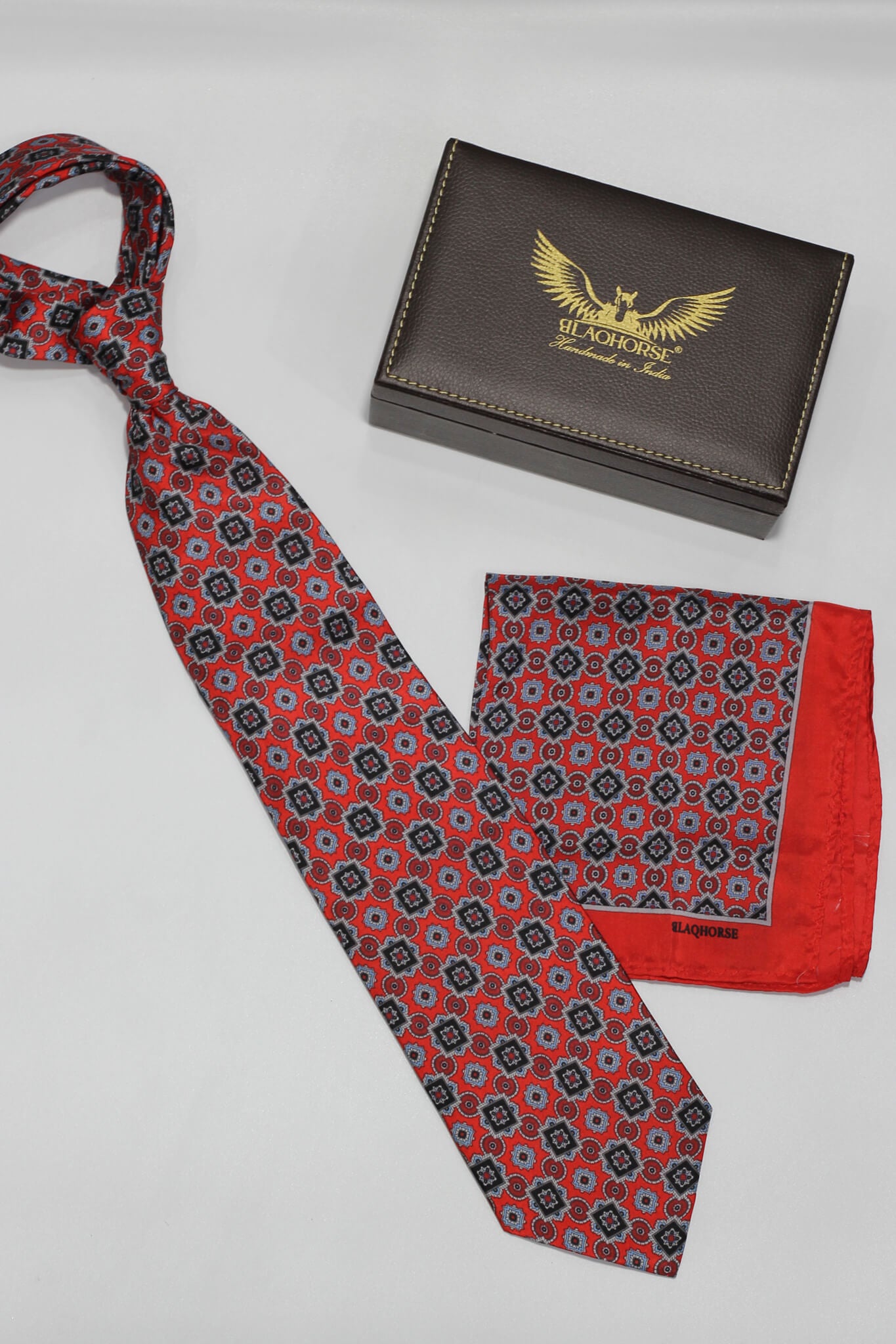 Elevate your formal attire with our Red and Blue Mandala satin silk tie and matching pocket square. Crafted in India from premium satin silk, this tie is expertly made using traditional hand-sewing techniques for exceptional quality.