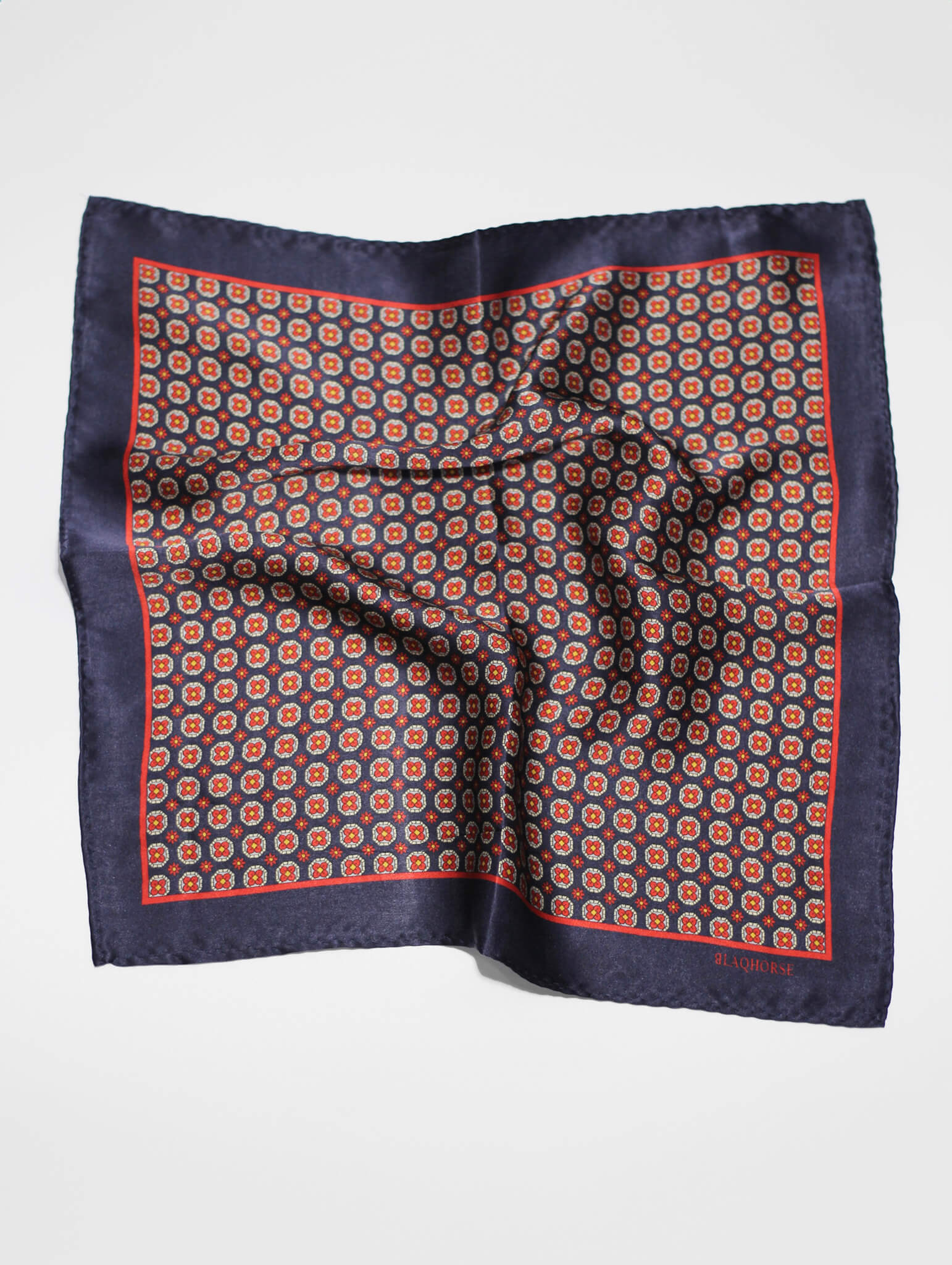 Enhance your style with our Red and Navy Medallion Pocket Square , crafted from the finest Italian silk. This striking accessory features a bold paisley design that beautifully combines warm rust and deep black tones, making it a perfect statement piece for any occasion. Ideal for elevating a blazer or adding flair to your outfit, this pocket square effortlessly blends sophistication and charm. Treat yourself or give it as a thoughtful gift—it's sure to impress!