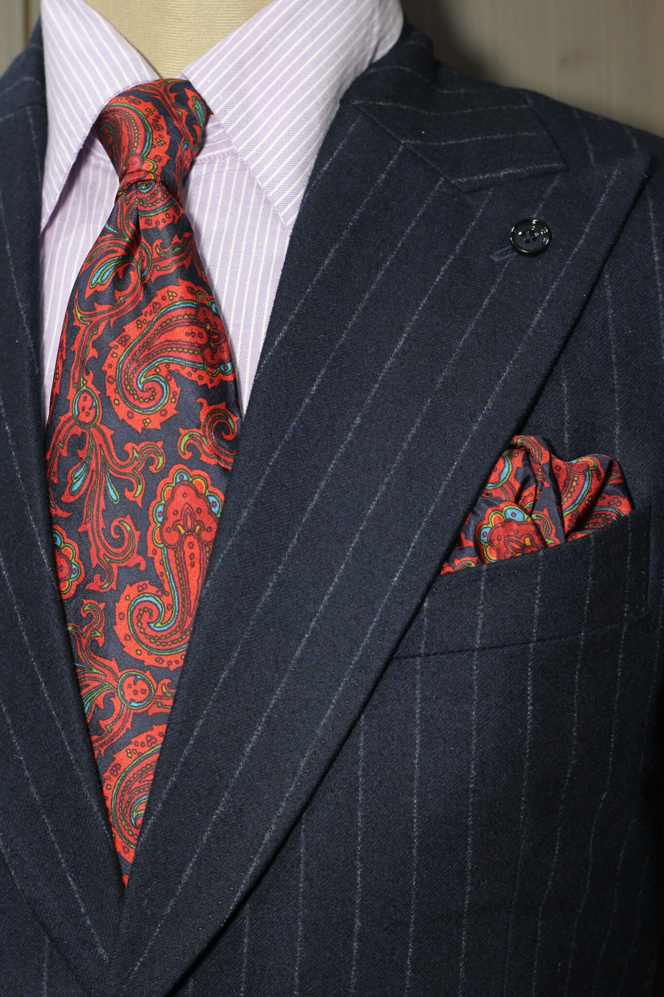 Elevate your formal attire with our Red and Navy Paisley satin silk tie and matching pocket square. Crafted in India from premium satin silk, this tie is expertly made using traditional hand-sewing techniques for exceptional quality.