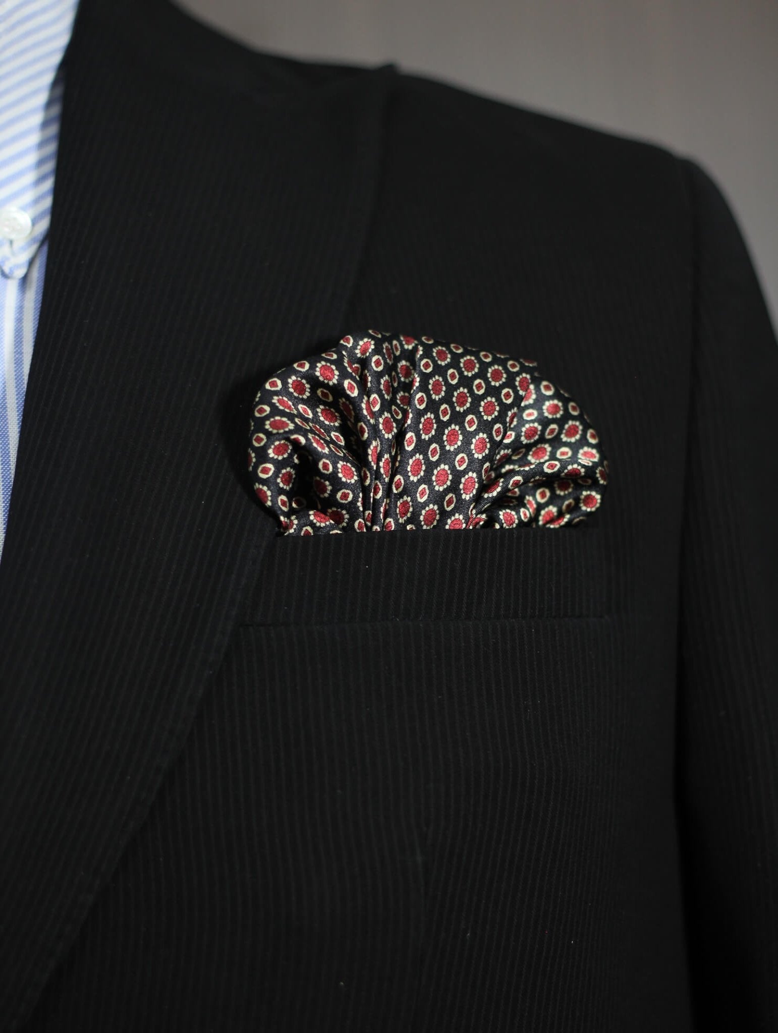 Enhance your style with our Ruby Medallion Pocket Square, crafted from the finest Italian silk. This striking accessory features a bold paisley design that beautifully combines warm rust and deep black tones, making it a perfect statement piece for any occasion. Ideal for elevating a blazer or adding flair to your outfit, this pocket square effortlessly blends sophistication and charm. Treat yourself or give it as a thoughtful gift—it's sure to impress!
