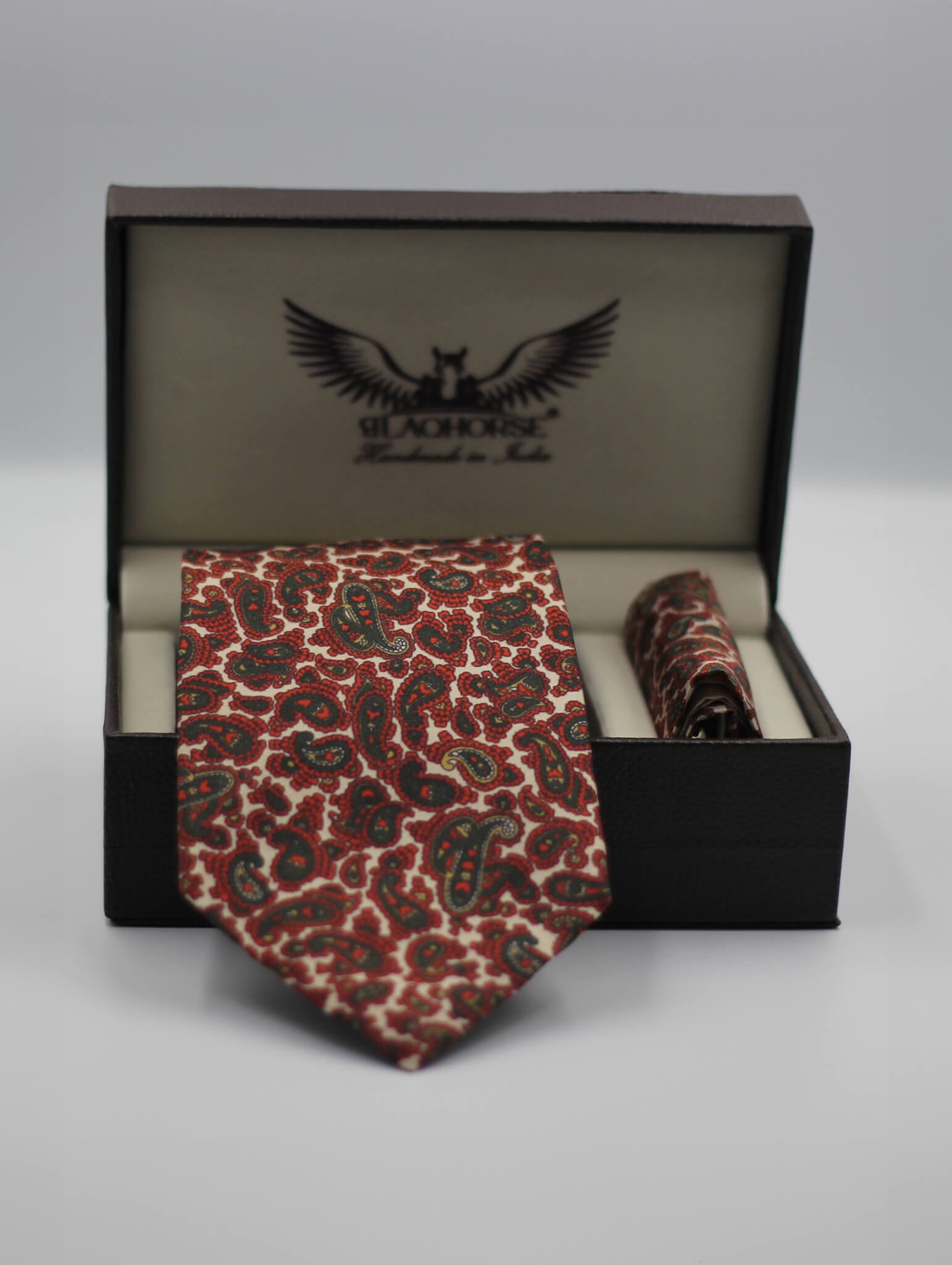 Elevate your formal attire with our Small Paisley Satin Silk Tie and matching pocket square. Crafted in India from premium satin silk, this tie features traditional hand-sewing techniques for exceptional quality.