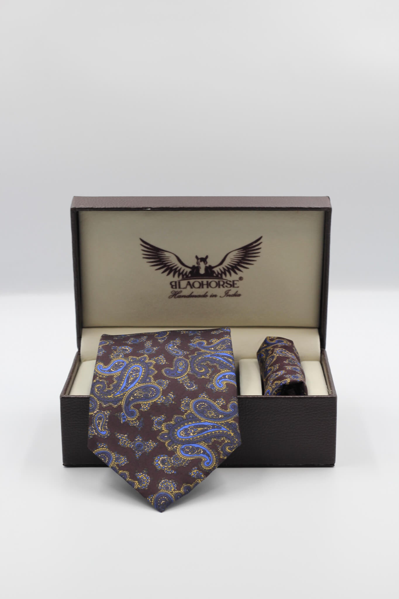 Elevate your formal attire with our Wine and Blue Small Paisley satin silk tie and matching pocket square. Crafted in India from premium satin silk, this tie is expertly made using traditional hand-sewing techniques to ensure exceptional quality.